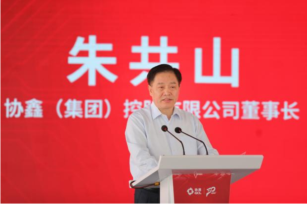 8日、著工式であいさつする?yún)f(xié)鑫集団の朱共山(しゅ?きょうざん)董事長。(徐州=新華社配信)