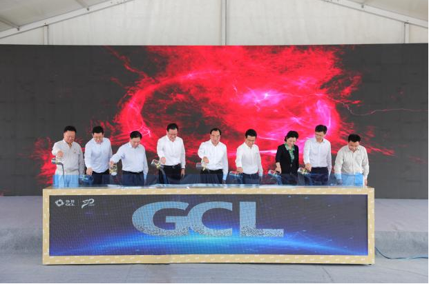 8日、プロジェクト著工式に出席した中國共産黨徐州市委員會と協(xié)鑫集団の主要責任者。(徐州=新華社配信)