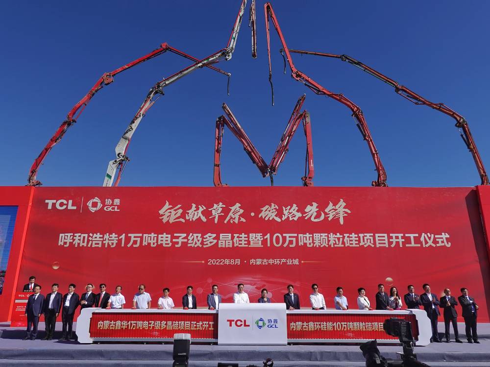 The commencement ceremony of TCL&GCL Hohhot 10,000-ton electronic grade polysilicon project and 100,000-ton granular silicon project was held in Hohhot, Inner Mongolia, attended and witnessed by Bao Gang (Member of the Standing Committee of the Inner Mongolia Autonomous Region Party Committee and Secretary of the Hohhot Municipal Party Committee), Ai Lihua (Vice Chairman of the Autonomous Region), He Haidong(Mayor of Hohhot), Li Dongsheng (Chairman of TCL Group), Zhu Gongshan(Chairman of GCL Group),etc.