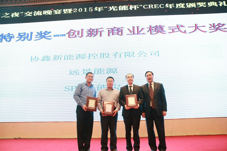 11月5日晚,在“十一科技之夜”交流晚宴暨2015年“光能杯”CREC年度頒獎典禮上,協(xié)鑫新能源控股有限公司分別榮膺 “優(yōu)秀電站開發(fā)投資商大獎”、“優(yōu)秀EPC企業(yè)大獎”、“創(chuàng)新商業(yè)模式大獎” 三大獎項,公司副總裁徐陽代表公司領(lǐng)取了獎牌代表公司并發(fā)表獲獎感言。